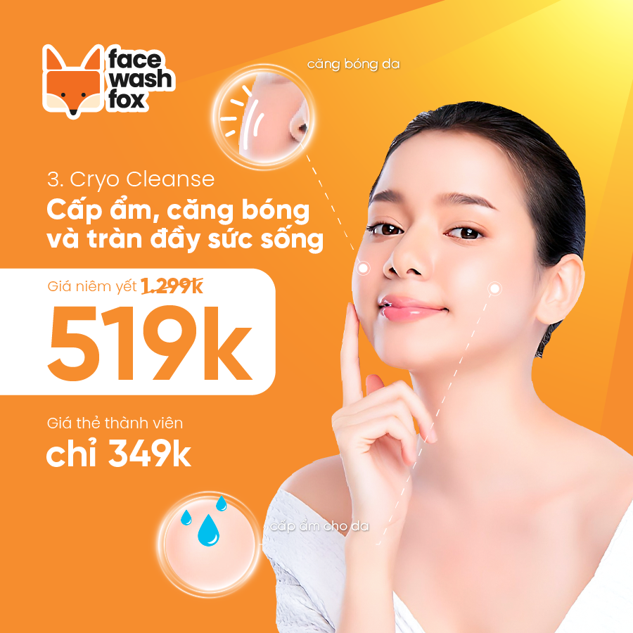 Sự kết hợp giữa công nghệ Cryotherapy và quy trình rửa mặt chuyên sâu, lỗ chân lông được thu nhỏ, cải thiện độ ẩm trên da. Cryo Cleanse không chỉ giúp da trở nên mịn màng, căng bóng và rạng rỡ, mà còn thúc đẩy tái tạo tế bào da, đồng thời tạo cảm giác thư giãn và sảng khoái.