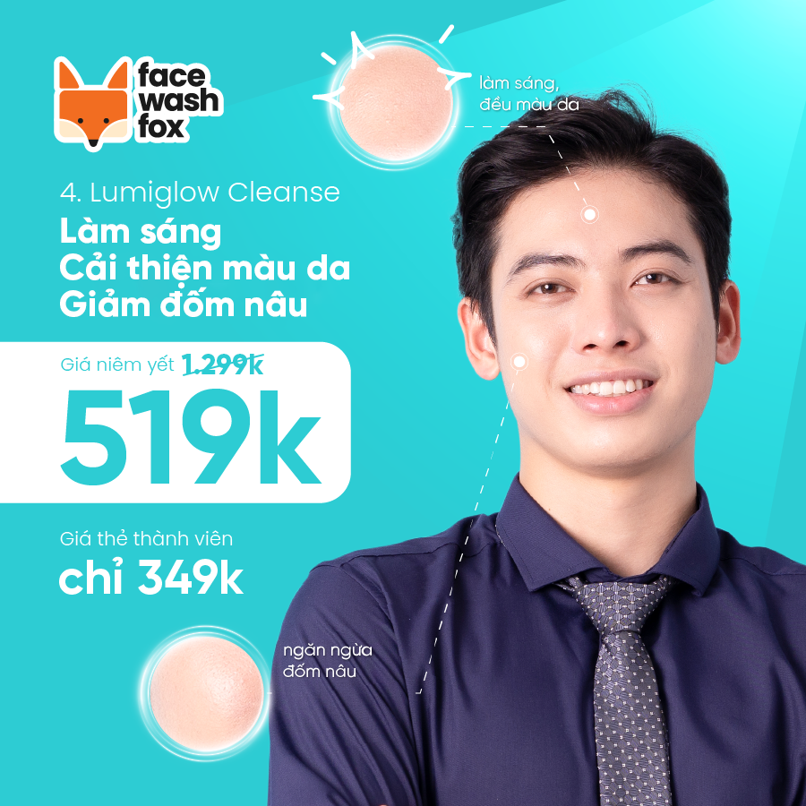 Dịch vụ mang lại làn da trắng sáng tự nhiên dựa trên công nghệ tiên tiến và dịch vụ rửa mặt chuyên sâu, Lumiglow Cleanse giúp giảm tình trạng nám, tàn nhang và các vết thâm sạm trên da. Làn da được chăm sóc trở nên mềm mịn, rạng rỡ và đều màu hơn, tràn đầy sức sống.
