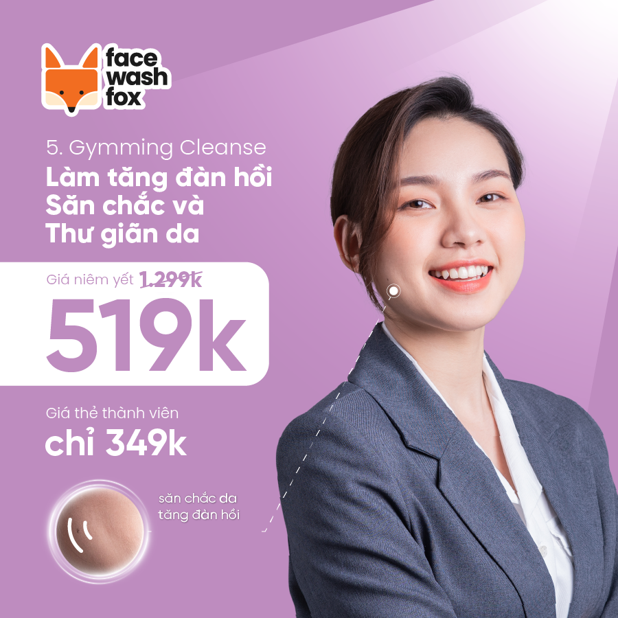 Đây là dịch vụ hỗ trợ săn chắc và mang lại làn da tươi trẻ. Với việc sử dụng công nghệ nâng cơ tiên tiến và quy trình chăm sóc da hiệu quả, Gymming Cleanse giúp đẩy lùi dấu hiệu lão hóa, cải thiện độ đàn hồi, làm săn chắc đường nét trên khuôn mặt và khôi phục sự trẻ trung cho làn da của bạn.